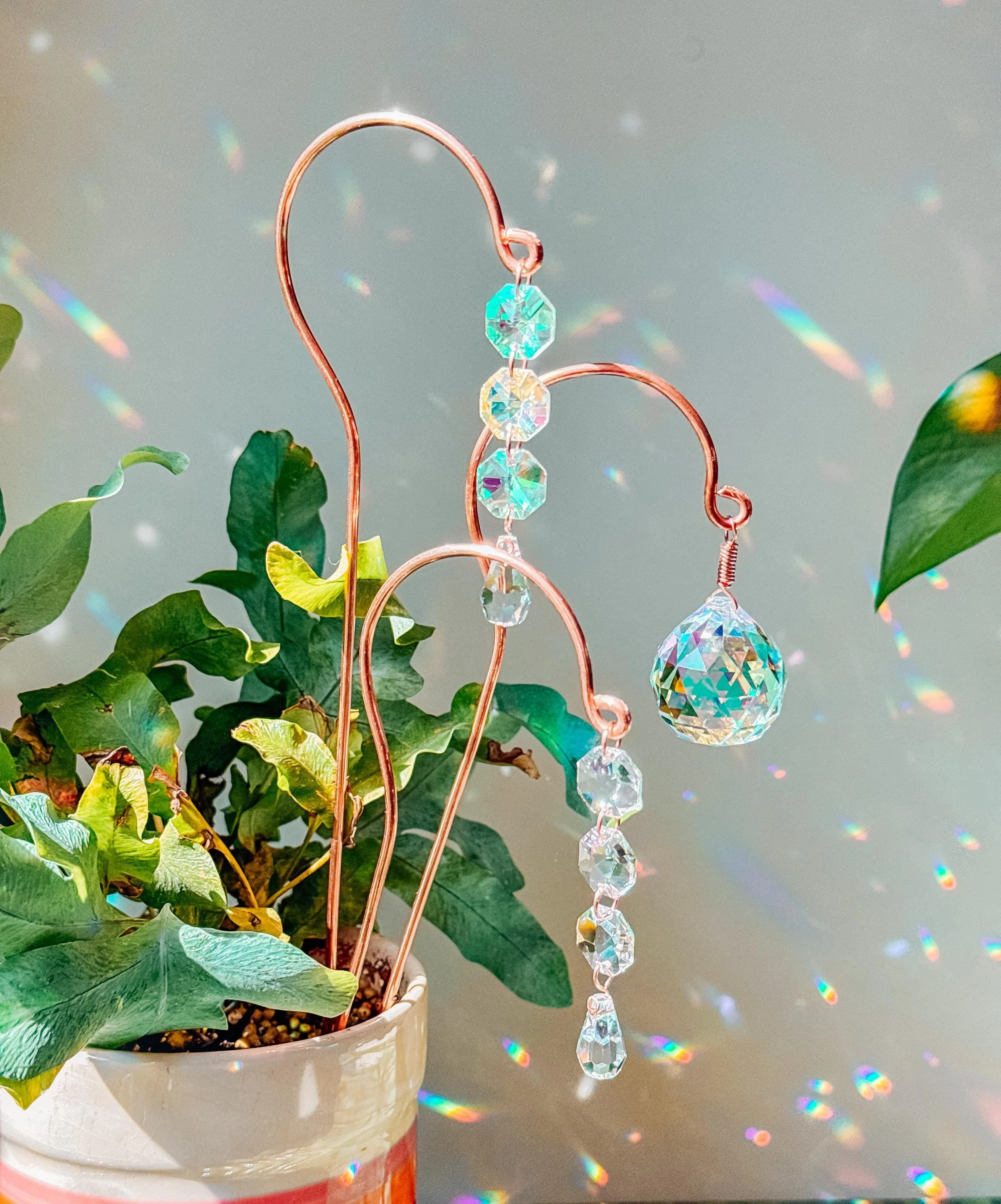 Copper Plant Stake Sun Catcher – Prism Rainbow Maker, Plant Stake, Garden decor, Gift for Plant Lovers, gifts for her, home decor, Christmas